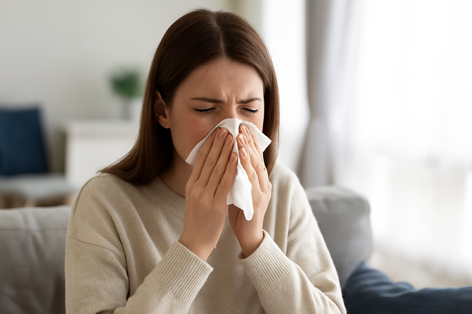 Allergies fréquentes (éternuements, nez qui coule, yeux irrités).